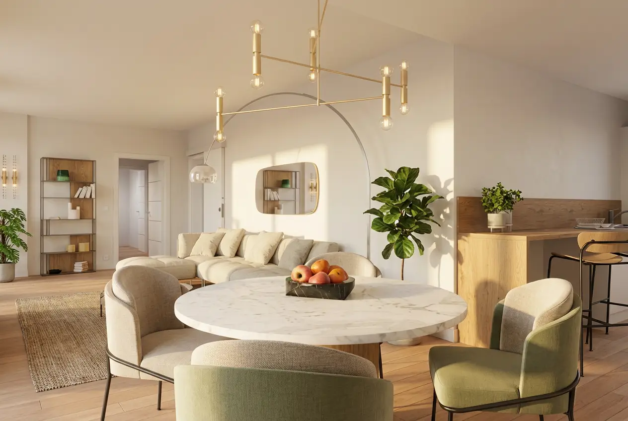 Découvrez ce rez-de-chaussée spacieux de 117,6 m², baigné de lumière grâce à ses trois façades, offrant un cadre de vie chaleureux et contemporain.